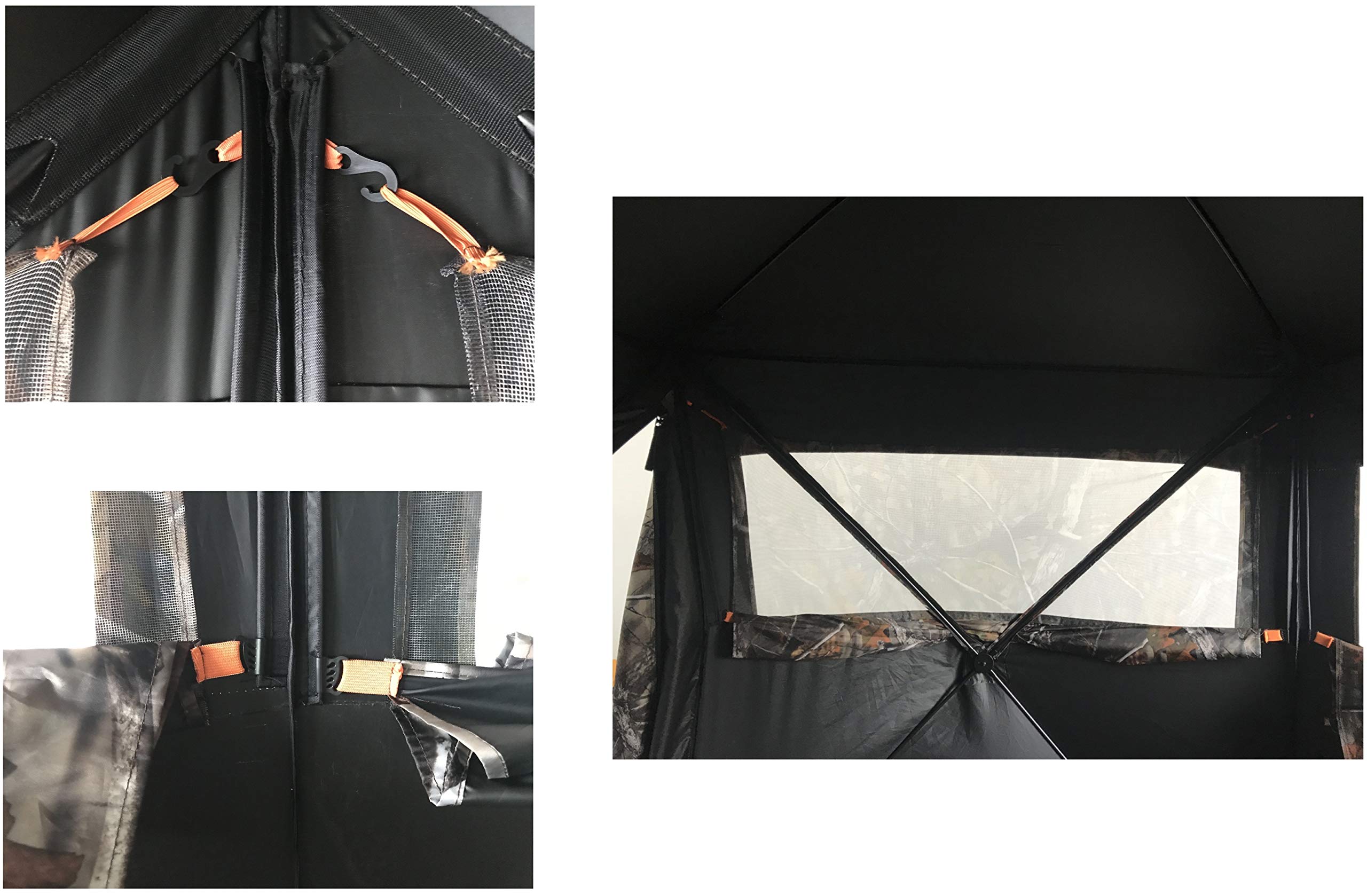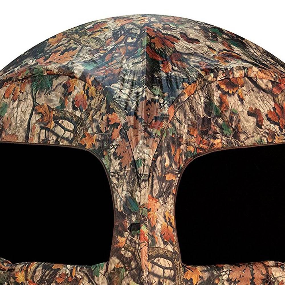This creates a true '360 degree view' hunt and eliminates blind spots. In our ground blinds review, we explore this gear in more detail, and you choose the one that meets your hunting demands best. Blinds can accommodate more than 1 person, and some don't require trees to anchor them as the stands do. Within just seconds, the ground blind can be made ready to use.